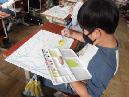 1人1人自分のお気に入りの色を作って、工夫しながら着色しています。完成が楽しみです!