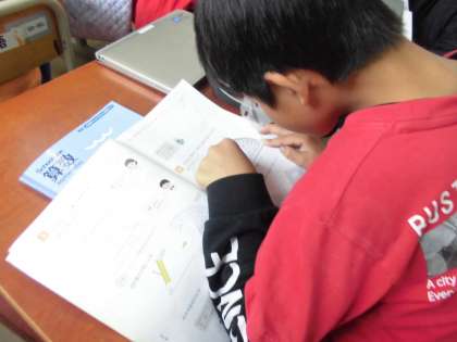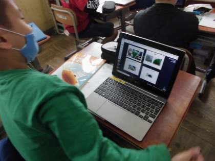 角の大きさの概念もだいぶ理解が進み、分度器を使って角を描いたり、測ったりしています。タブレットも活用して学習を進めています。