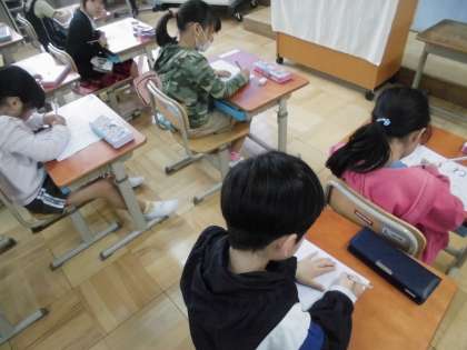 合言葉を掛け合いながら、ひらがなの練習を頑張っています。
