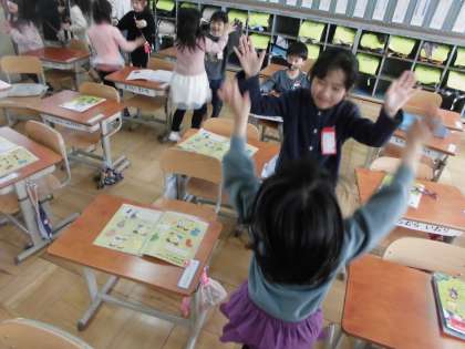 次は、隣の友達と、手拍子をして手を合わせたり・・・。