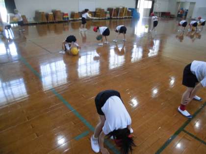 今日は、主にボールを使って体ほぐしの運動をしました。