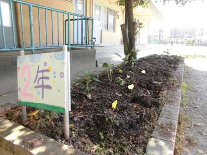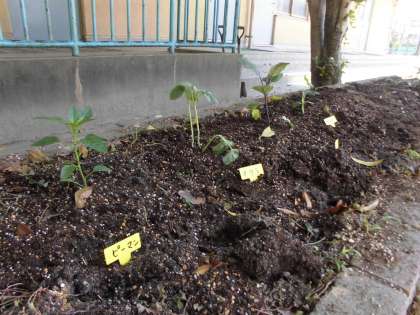 種植えといっしょに苗も植えました。大きく育ってくれるようにみんなで育てていきたいです。