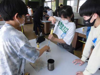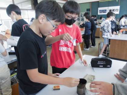 今回は、ものが燃える前と後の空気にどのようなちがいがあるかを調べる実験をしました。気体検知管を使って、ろうそくが燃えると酸素が減って二酸化炭素が増えるということに気づくことができました。さすが6年生、実験をかさね、マッチの使い方がとても上手になりました。