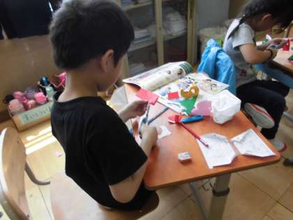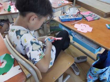 安全な使い方を確かめた後は、新聞や紙を切って形づくりをしました。色々な形が作れて楽しく学習できました。