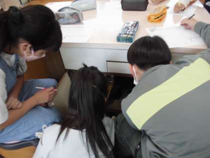 5年生になって家庭科の学習が始まりました。今日は、家庭科室に行って家庭科室にあるものを調べたり、調理に使う器具にどんなものがあるのかを調べたりしました。実際に調理するのが今から楽しみです!