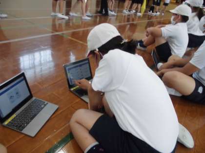 今週は体力テスト週間になります。今日は、反復横跳びや上体起こしなどに挑戦しました。昨年度の記録よりも良い記録が出せるようにがんばってほしいです。記録は今年からタブレットで入力しています。