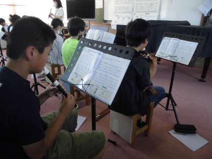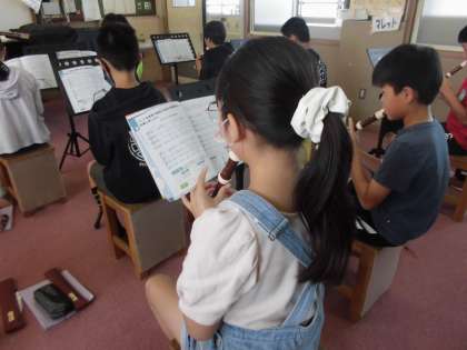 音楽でリコーダーの練習をがんばっています。主旋律と副旋律のパートに分かれて演奏をしています。お互いの音を聞き取りながら演奏できるようになれればいいな、と思います。