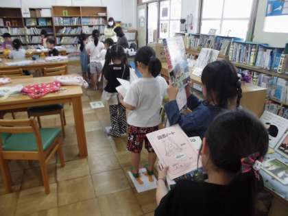 もう数回目の図書室です。流石に使い方にも慣れ、読みたい本を上手に探して借りることができるようになってきました。順番待ちもしっかりでき、もうバッチリかな。