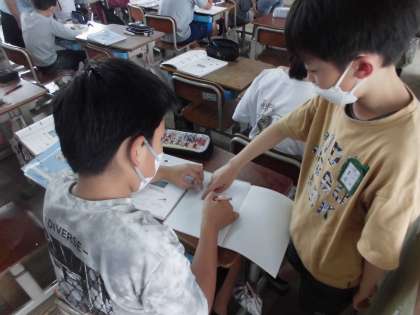 小数のかけ算の学習をしています。みんなで助け合いながら「わかった!」に変えていけるようにがんばっています。