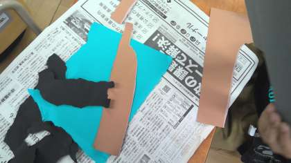 その紙の形や色、置き方を工夫して、どのように表すか考えました。