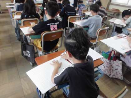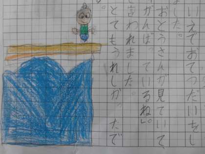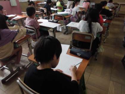 言われてうれしかった言葉を思い出し、その時の様子を詳しく書くという学習をしています。今日は、書いた文の清書をしました。みんなに発表するのが楽しみです。