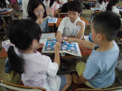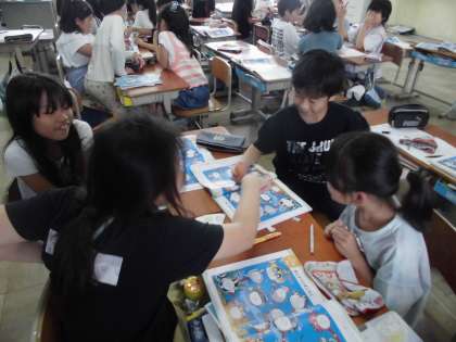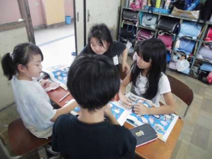 道徳で「おしゃべりすごろく」に挑戦しました。とまったマスの質問に答えることで自分を紹介していけるものです。3年いっしょに過ごしている友だちでも盛り上がって楽しそうに取り組んでいました。
