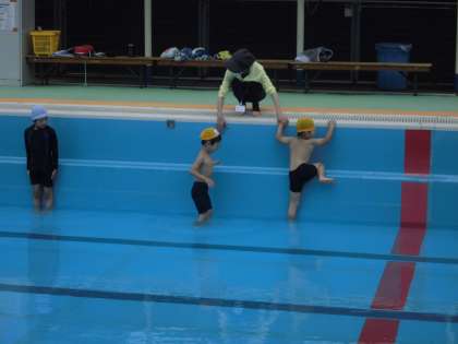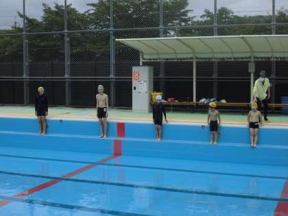 今年度初めての水泳学習がありました。1年生は初めてのプールだったので、恐る恐る気を付けながら入りました。