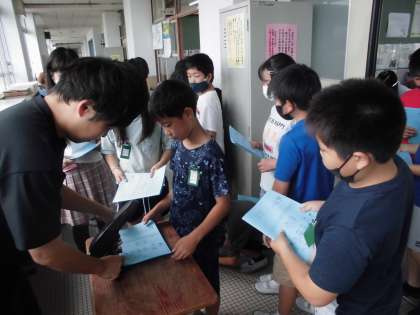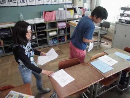 みんなで協力しながら、山の家のしおりを作りました。
