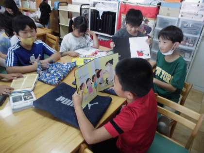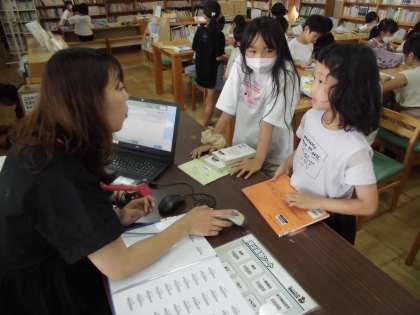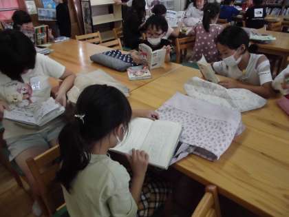 国語の時間に図書室に行きました。読みたい本を読んだり、借りたい本を選んだりしました。これからもたくさんの良い本と出会ってほしいです。