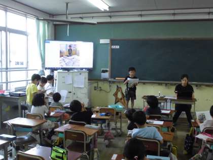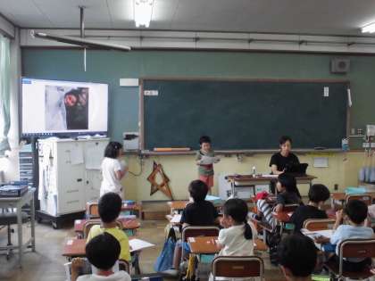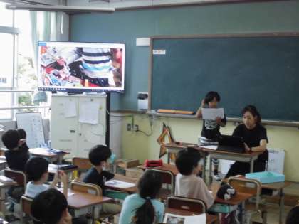 新聞紙を使って図工の学習をしました。今日は自分の作った作品をみんなで交流しました。色々な見方や考え方があっておもしろかったです。子どもたちも友だちの作品に興味津々で見入っていました。