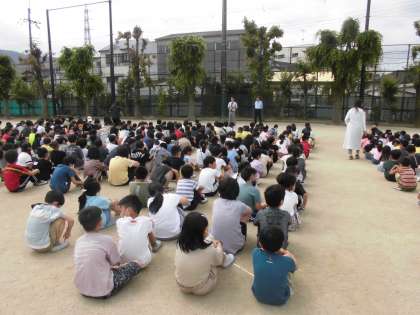 子どもたちは口と鼻をハンカチでおさえて、速やかに避難することができました。