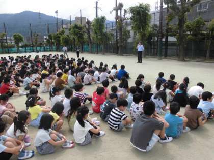 訓練の最後には校長先生から「もし起こったときにどれだけ落ち着いて行動できるかが自分と周りの人の命を守ることにつながる」というお話があり、子どもたちは真剣に聞いていました。