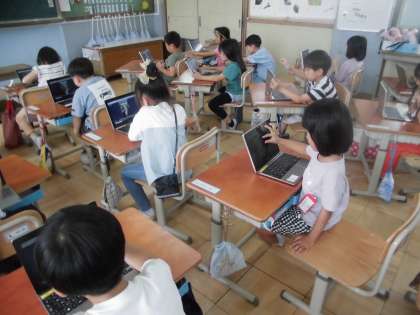 少しずつ慣れてきたGIGA端末を使って、先生たちの顔写真を見たり、その顔写真を校舎図の中に置いたりしました。