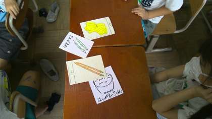 食品のカードを赤・黄・緑に分けて自分があまり食べることができていない食品群はどれかを考えていました。