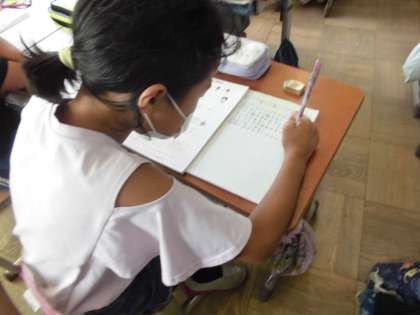 千や万を単位とした数のたし算やひき算の計算の仕方を考えました。自分の考えをしっかり説明することもめあてにがんばりました。集中して取り組めていました。