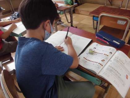 100をこえる数の学習をがんばっています。100のまとまりで計算する良さに気づきながら学習を進めることができました。
