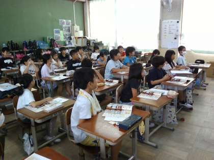 4年生では、道徳と外国語で担任を入れ換えをして授業を行っています。子どもたちは、どちらの先生でも楽しみながら一生懸命学習しています。