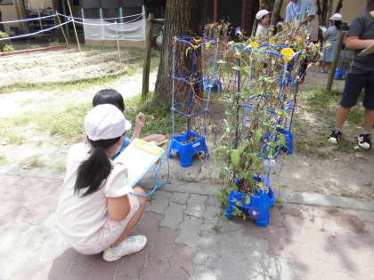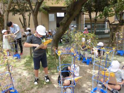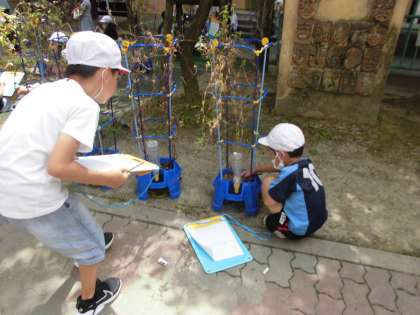 夏休みもご家庭でご協力いただいたアサガオの観察をしました。お家で育てていただいたおかげでたくさんの気付きがある学習になりました。
