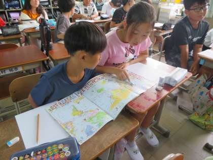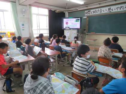 総合の学習で、チェコ共和国に住んでいる外川さんと交流をしました。チェコ共和国について、外川さんからお話をしていただいたあと、子どもたちから外川さんに質問をしました。世界の国について興味津々な様子が見られました。