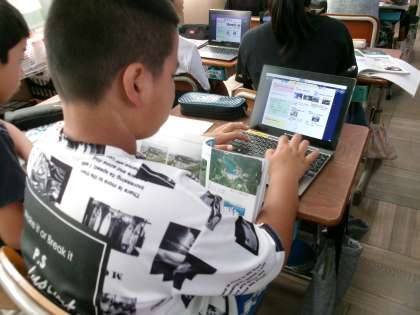 今日は、洪水の被害や洪水に備える工夫について調べました。調べたり、まとめたりできるタブレットが大活躍の1時間でした。