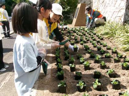 毎年、3年生が行っている名神の花植えを今年も行いました。