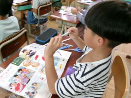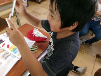 パタパタ動くストローを作っています。上手に作れた後は嬉しそうに遊んでいました。