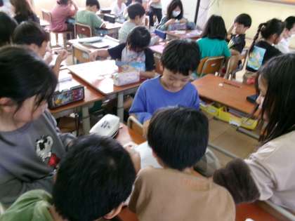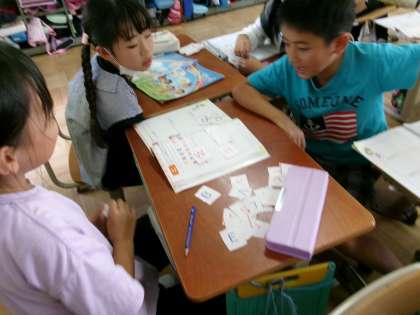 外国語でアルファベットの学習をしています。今日は、自分なりのルールでアルファベットを仲間分けして、それを使ってクイズ形式でゲームを楽しみました。これからもアルファベットに親しんでいきたいです。