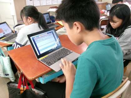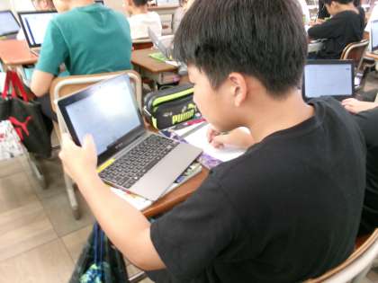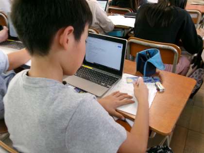社会で食料生産の学習をしています。今日は、食生活の変化が食料生産に与えている影響について調べました。自分たちの生活に直接関わる内容なので、興味をもって調べる姿が見られました。