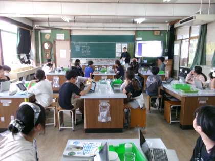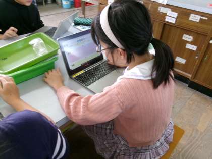 食塩が水に溶ける様子を観察しました。観察したことをタブレットでまとめ、水溶液という言葉を新しく学びました。これから水溶液について詳しく調べていきたいと思います。