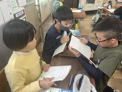 算数では、三角形や平行四辺形、台形、ひし形の面積を求める学習を行ってます。子どもたちは長方形や正方形の面積の公式を使って、どうしたら面積を求めることができるのかを考え、友達と交流しながら学習に取り組んでいます。