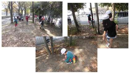 生き物がいるかと思いきや、もう秋が進んでいるようで、どんぐりやイチョウの葉っぱをたくさん見つけることができました。