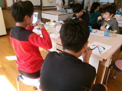 歯みがき指導がありました。自分の磨き方できちんと汚れが落ちているかを確認しました。これから毎日の歯みがきが上手にできるといいですね。