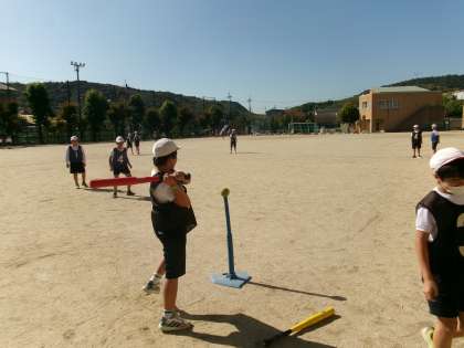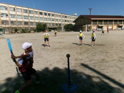体育でベースボールをやっています。ルールにも慣れてきて上手に試合を進めることができるようになってきました。これから攻め方や守り方もチームで考えていきたいです。