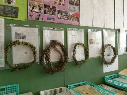 収穫したものを使って、リース作りもしています。クリスマスに前には素敵なリースに仕上がっているといいな、と思います。
