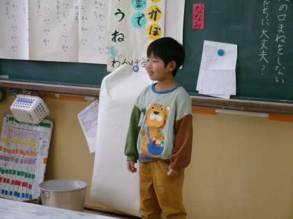 1週間に1回、自分の毎日の様子をスピーチでみんなに伝える取組をしています。スピーチの後には質問をお互いにし合うことも続けてきています。継続して取り組むことで少しずつですが、力がついてきています。