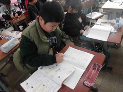 今日の算数の学習では、商が1よりも小さくなるわり算の筆算の仕方を考えました。先生の話を聞いて、自分で工夫してノートにメモをしている子もいました。繰り返し練習して完璧にできるようにがんばっていってほしいですね。