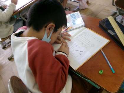 図を使いながら、2つの数量の違いに着目して解く問題に挑戦しました。図に表すと、とてもわかりやすくなることを実感できる良い学習になりました。
