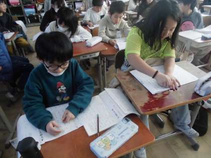3年生の教室では、通知票を渡してもらっている間に、宿題の表紙にある「学習や生活のめあて」を考えていました。冬休みの早寝早起きを心がけて健康に過ごしてほしいと思います。宿題も計画的にがんばってくださいね。