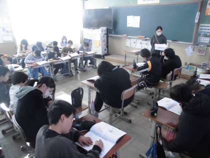 1組では先生から通知票をもらい2学期の学校生活を振り返りをしました。休み明けにはジョイントプログラムのテストもあります。自分の苦手な教科、単元を中心に復習できるといいですね。