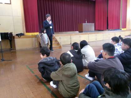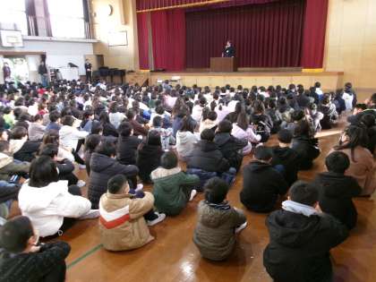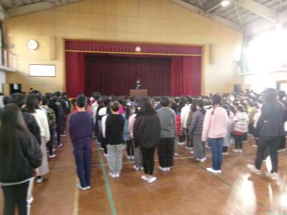 校長先生からは「当たり前が当たり前にできることに感謝の気持ちをもって過ごしましょう」とお話がありました。子どもたちは静かに真剣な表情で聞いていました。