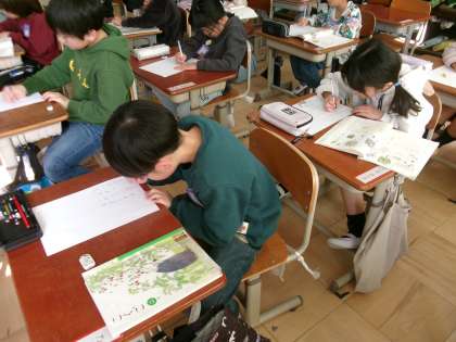 1組では「冬がいっぱい」の学習で、冬を感じるものをカードに書いていました。おもちつきをしたことやおせち料理を食べたことなど、冬ならではの体験をした子がたくさんいたようです。
