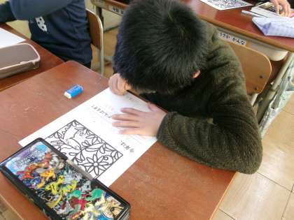2組では、冬に楽しみにしていることやその理由を段落に気をつけながら書いていました。書き終わったら文章を自分で読んで、間違いがないか丁寧に確認していました。