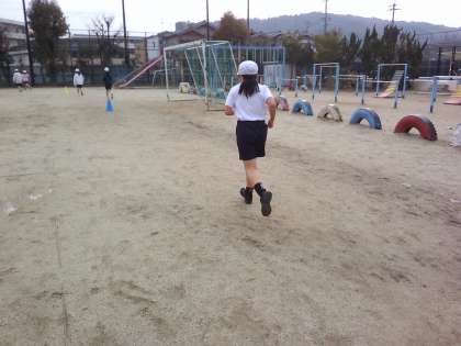 体育では、持久走記録会にむけて、ペース走を学習しています。