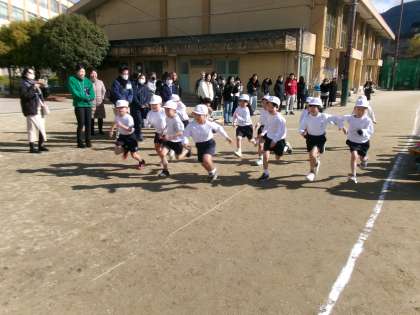 寒い中、ご参観いただきありがとうございました。走る前から子どもたちは「ドキドキする!」と緊張気味に言っていましたが、いざ本番になると、お父さんやお母さんの前でかっこいいところを見せようとがんばっているようでした。子どものがんばりをまたお家でも褒めてあげて下さい。